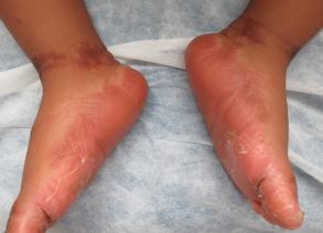 Existe heterogeneidade de apresentação, mas são comuns pápulas ceratósicas foliculares, placas eritêmato-alaranjadas e ceratodermia palmo-plantar. Pode também haver hipo e hiperpigmentação, além de prurido. Raramente compromete mucosas. A evolução é igualmente variável, podendo ocorrer desde remissão espontânea, períodos de remissão e recidiva, até curso crônico. Foram propostas alterações no metabolismo da vitamina A, anormalidade de resposta a infecções ou ainda predisposição genética como fatores contribuintes para seu desenvolvimento. Trata-se de um caso de pitiríase rubra pilar, que pode ser dividida em 6 tipos, de acordo com a idade de início, morfologia e distribuição das lesões, curso da doença e associação com a infecção pelo HIV.